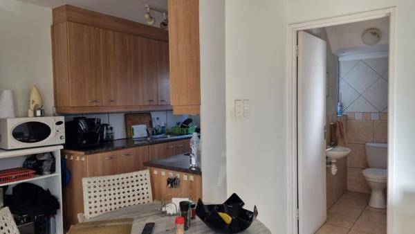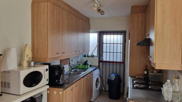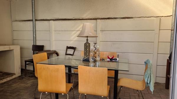 guest cloakroom with toiletbasin. Cottage doors open into fully enclosed 16 sqm patio with built-in braai and from the lounge area into fully enclosed garden plus double tandem carport behind secure gate