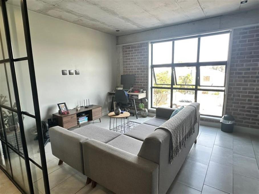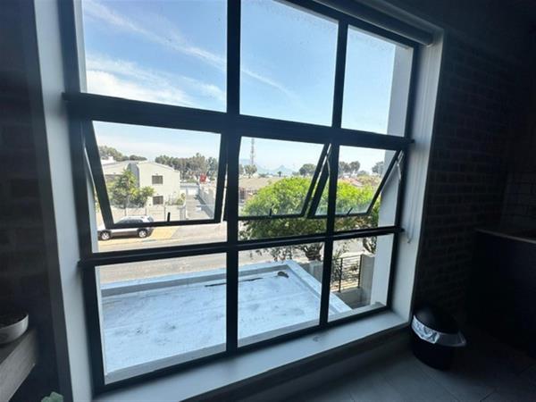 The contemporary kitchen is seamless to the living area and offers one plumbing point, electric stove, hob and extractor fan and ample cupboard space. Your south facing lounge window gives you views toward Table Mountain.