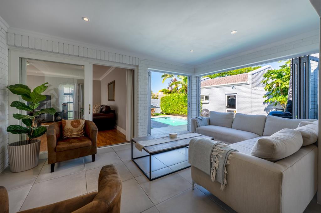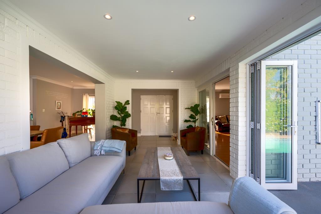 A standout feature is the enclosed entertainment area, complete with a dual-sided built-in braai and stacking doors, creating the perfect connection to the landscaped garden and sparkling poola true entertainers delight.