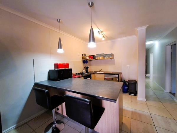 The home offers a modern open-plan layout that seamlessly connects the lounge, kitchen, and braai area, creating a warm and inviting atmosphere.