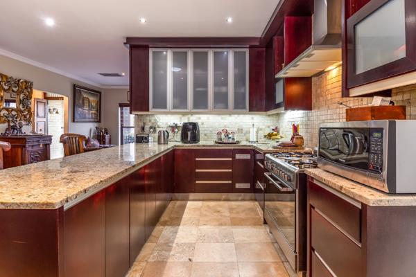 This beautifully designed residence offers the perfect balance of luxury, space, and functionality, ideal for dual living or extended families. Spread over two expansive levels, this home boasts generous living areas both upstairs and downstairs, offering privacy and flexibility for multi-generational living. The heart of the home is a large, well-appointed kitchen with ample workspace, ideal for family meals and entertaining. Entertainment is effortless with a built-in bar, a traditional pizza oven, and two outdoor braai areas perfect for hosting friends and family all year round. Comfort is ensured year-round with central heating, while the sparkling pool invites you to relax and enjoy the outdoors. Several utility and study spaces provide room to work or learn from home, making this property as practical as it is beautiful. Sustainable features include an inverter system for reliable backup power and a grey water system to support eco-conscious living. Indoor highlights such as an elegant water feature and indoor waterfall add a unique touch of serenity to your everyday environment. This is more than just a home its a lifestyle.