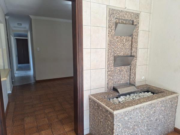 These doors lead you out onto a beautiful wooden deck, overlooking a sparkling family-sized swimming pool and a private garden. This is the kind of outdoor haven where summer memories, braais, and late-afternoon relaxation come standard.