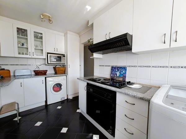 The fully tiled kitchen is both practical and stylish, fitted with built-in cupboards, a built-in oven, hob, and extractor fan. It also offers connection points for both a dishwasher and a washing machine, along with double basins for added convenience, making everyday living easy and efficient.