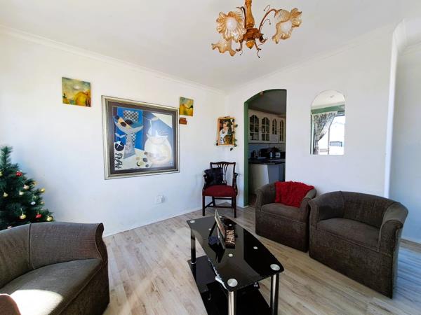The spacious lounge features beautiful, laminated flooring, offering a cozy yet elegant setting for everyday living or entertaining guests.