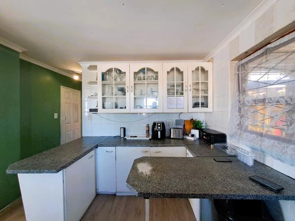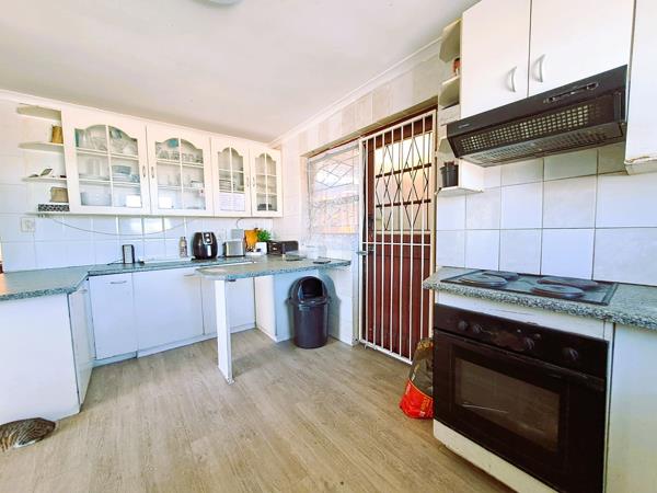 Flowing seamlessly from the lounge, the well-appointed kitchen boasts ample built-in cupboards, a built-in oven, hob, and extractor fan, all finished with stylish laminated flooring. This functional space is perfect for preparing family meals or hosting casual get-togethers.
