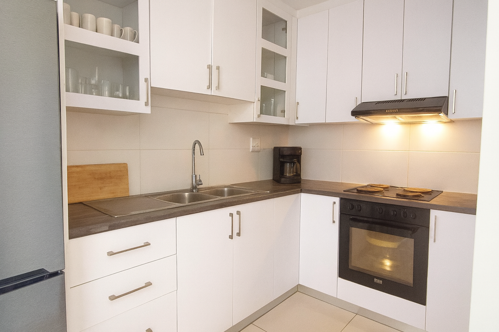 Semi-Attached, Open-plan living area seamlessly connects the lounge and a contemporary kitchen.