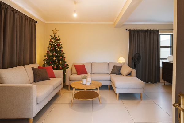 Enjoy the private outdoor seating area and garden. Two open parking spaces are available. Located in suburban Brackenfell, this home offers a tranquil setting with convenient access to amenities.