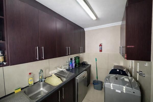 Additional highlights include aluminium windows, laminated and tiled flooring, and built-in cupboards throughout. Security is well taken care of with an alarm system, armed response, and outdoor beams.