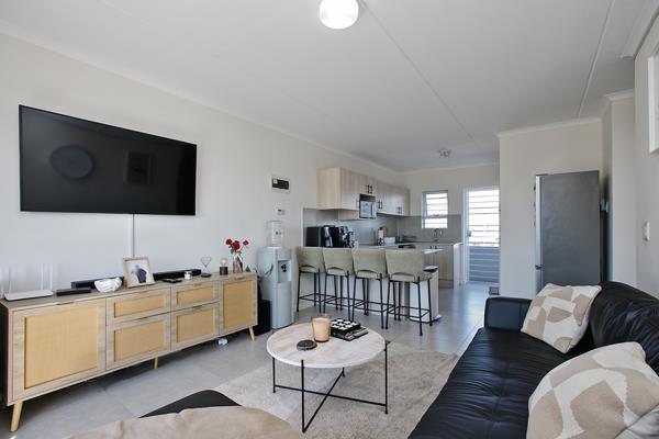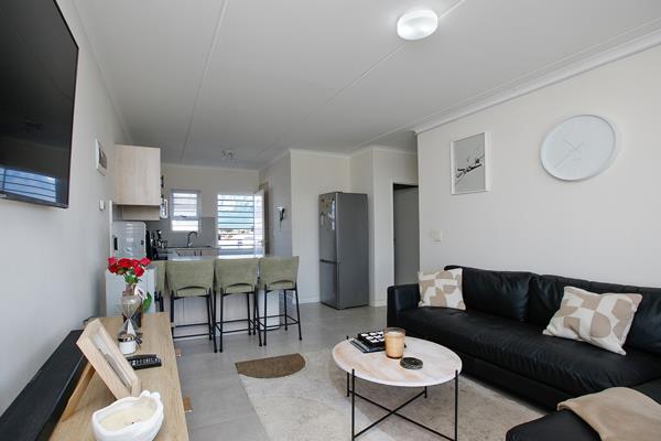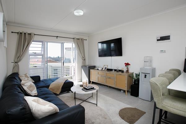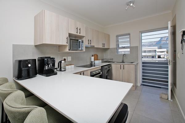 Upon arrival, you are welcomed into a bright and inviting open-plan kitchen and lounge area, creating a comfortable living space. The kitchen offers built-in cupboards and includes a plumbed area for your washing machine for added convenience.