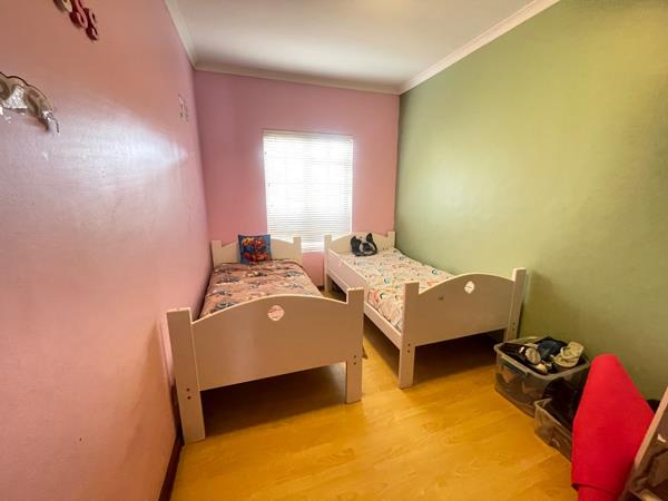 Inside, the home includes a functional kitchen and a comfortable lounge area, providing essential spaces for daily living. The four bedrooms are versatile, with some featuring laminate or wooden-look flooring and one benefiting from built-in wooden wardrobes, offering practical storage solutions. the bathroom is fully tiled and includes a toilet and basin and shhower