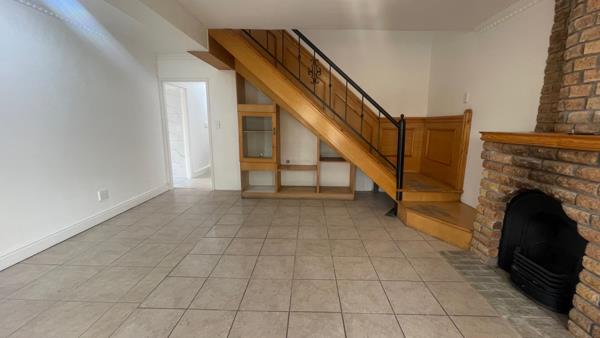 Step into a sleek galley-style kitchen featuring modern tiles, built-in oven, hob, and ample cupboard space perfect for home-cooked meals and effortless entertaining. The cozy lounge, complete with a fireplace, creates a warm and inviting atmosphere for family gatherings.