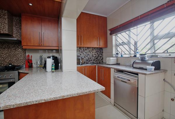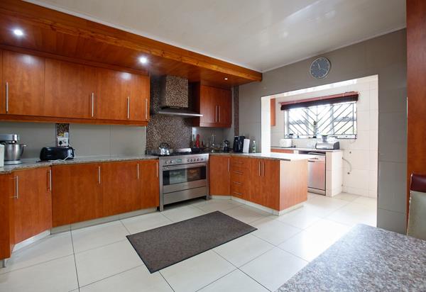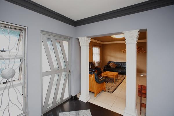 The home boasts 4 well-sized bedrooms, all with built-in cupboards. The main bedroom includes an en suite bathroom, while two of the bedrooms share a walk-in-style closet. The remaining bedrooms are served by a neat family bathroom.