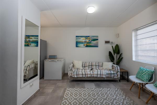 Step inside and be welcomed by a bright and airy lounge, beautifully finished with tiled flooring and filled with natural light that creates a relaxed and homely atmosphere. The charming kitchen is thoughtfully designed with built-in cupboards, granite countertops, a stove and oven, a plumbing point, and space for a fridge, making everyday living both practical and enjoyable.