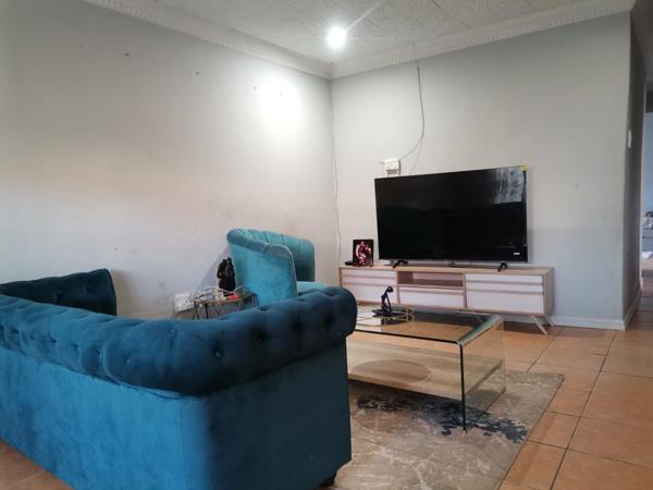 It features 3 spacious bedrooms, with the main bedroom including built-in cupboards. Tiled floors throughout the home for easy maintenance. A well-kept bathroom fitted with a bathtub, basin, and toilet. Fully fitted kitchen with ample storage and workspace.