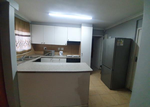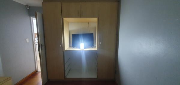 The spacious main bedroom features built-in cupboards BICs, sleek laminated flooring, and burglar bars for added security. The second bedroom is versatile and equally inviting.