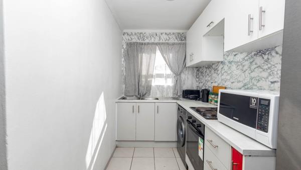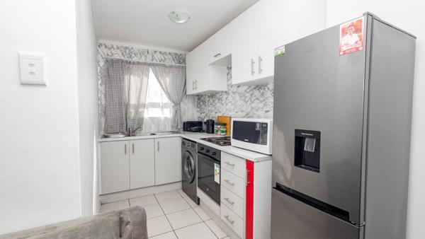 This well-maintained ground floor apartment, located within a security complex with manned security, offers the perfect home for its new owner. The apartment features an open-plan lounge and kitchen, with the kitchen equipped with a hob and under-counter oven.