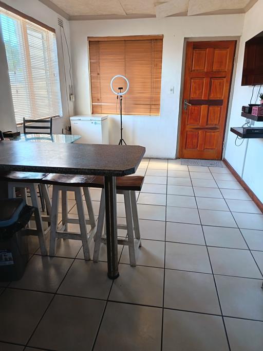 The main house has an open plan lounge and kitchen, with built-in cupboards. The family bathroom consists of a bath, basin and toilet. Your vehicles can park safely in a tandem garage . Adjacent to the kitchen is a multi-purpose storeroom.