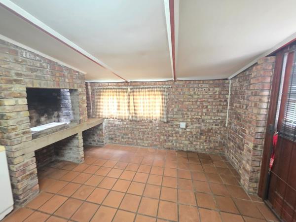 The home also features a dedicated braai room with a built-in braai, perfect for entertaining family and friends in a sheltered setting. A single garage provides secure parking and includes space and plumbing connections for a washing machine, adding to the homes everyday convenience.