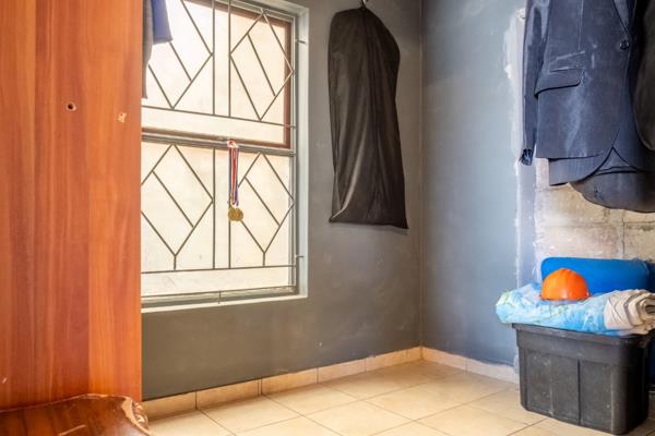 Upon entering the property, you are welcomed into a lounge featuring neat tiled flooring, creating a low-maintenance and inviting space for relaxation and entertaining. The kitchen provides a practical layout with space for potential built-in cupboards, allowing you to design it to your taste, as well as room for a fridge.