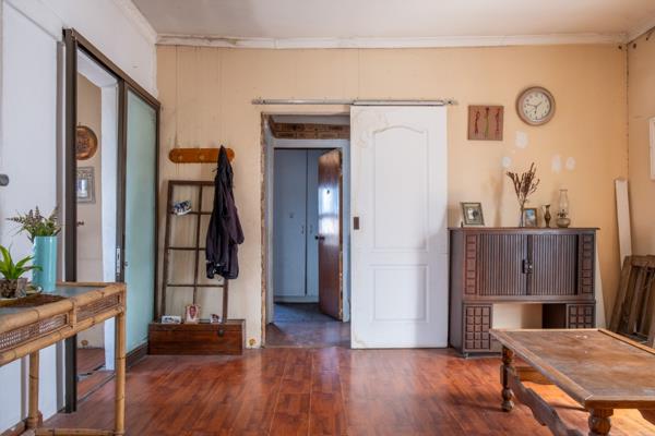 Upon entering, you are welcomed by a generous lounge that features double doors opening up to the kitchen, creating a seamless flow between living spaces. The additional living area boasts charming wooden flooring, a cosy fireplace, and a sliding door that leads to a balcony. The kitchen is fitted with light wood cupboards, an eye-level oven, a stovetop, and space for a fridge, providing both functionality and a warm, inviting atmosphere.