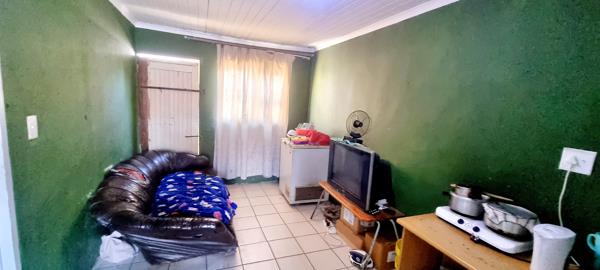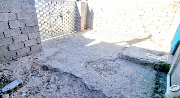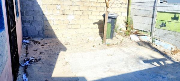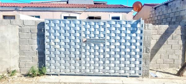 House is secured in front by a wall and sliding gate. Parking for two cars behind the wall and gate.