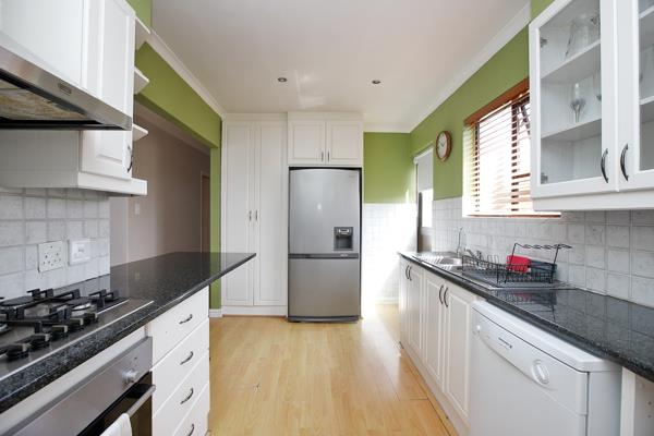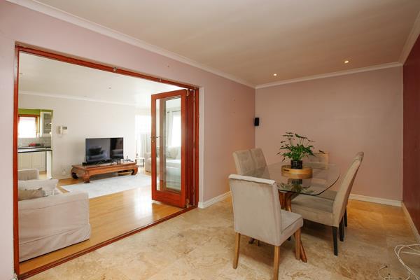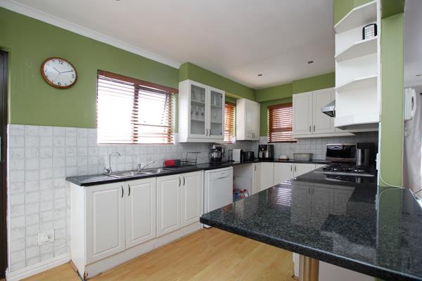 The property features four bedrooms, three of which include built-in cupboards and laminated flooring. The spacious lounge area is fitted with laminated flooring, creating a warm and inviting living space, while a separate dining room provides the perfect setting for family meals and entertaining.