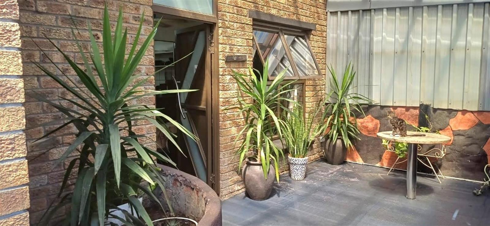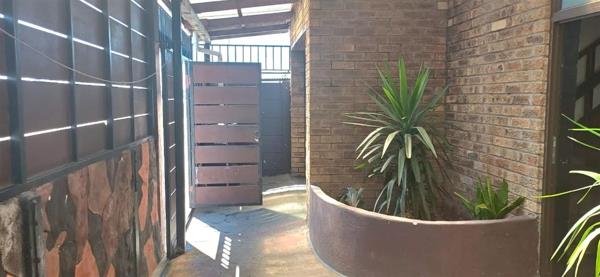 The front entrance area is covered and can be used for plants or a small outdoor setup.