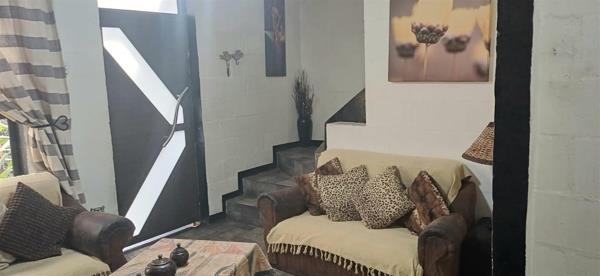There is a tiled staircase in the lounge which takes you to the four bedrooms upstairs. The main bedroom is a comfortable size, and the remaining three bedrooms have painted cement floors with one having a sunroof for natural lighting.