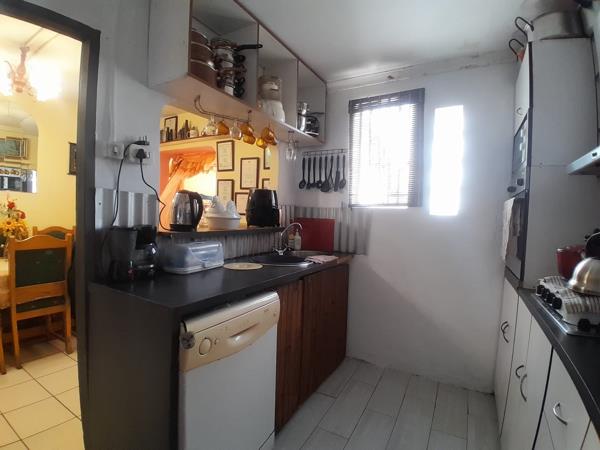 Stepping down from the living room, there''s potential to covert the add on structure into a laundry with the benefit of having a ground floor toilet, opens into an enclosed back area , to a private small courtyard through a sliding door and having the added convenience of a build-in braai.