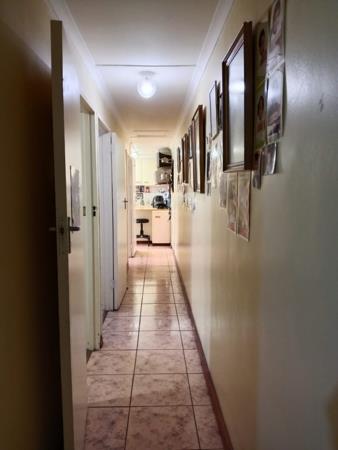 A beautiful long passage leading to the bedrooms and bathroom with tiled flooring.
