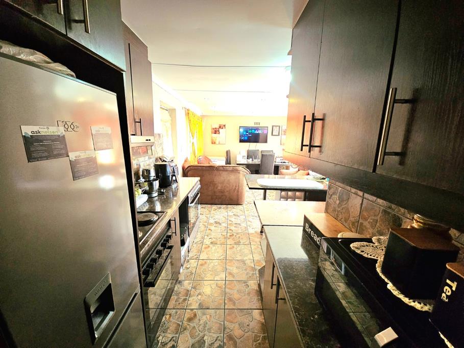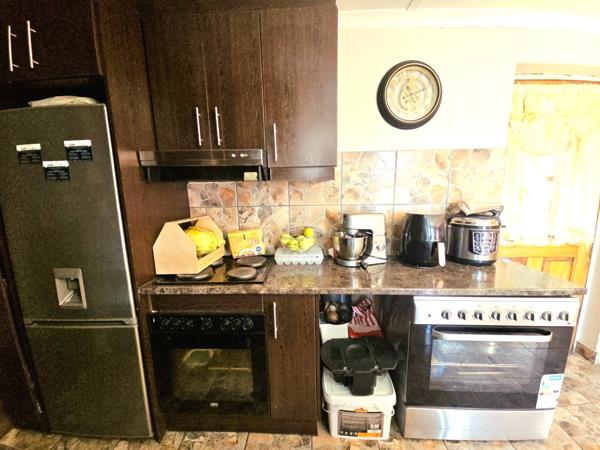 This lovely three bedroom home has presented itself to the market in Portlands. The property is enclosed behind a wall and can accommodate upto three cars. This house is situated on a 207 square metre plot. It boasts three sizeable bedrooms. Two of the bedrooms are fitted with built in cupboards. The family bathroom boasts a bath, overhead shower, handbasin and toilet. Step into a tiled open plan lounge and fully fitted kitchen. The kitchen has an electric hob and oven. The spacious yard is also enclosed with high walls and barb wire.