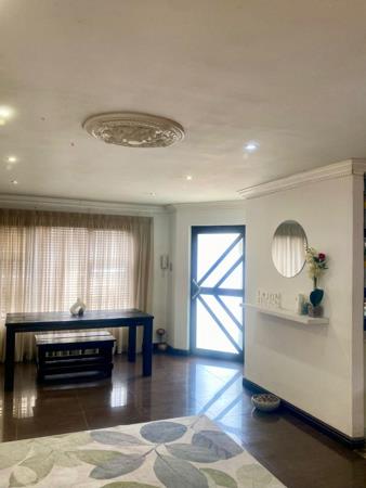The kitchen is a true highlight boasting granite countertops, ample cabinetry, a center island with built-in gas hob, and integrated oven and microwave. The adjoining scullery/laundry area provides additional storage and workspace, making it both stylish and practical.