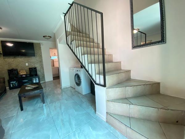 Upstairs: The upper level offers three well-sized bedrooms all fitted with laminated flooring. Two of the bedrooms feature sleek open-plan built-in cupboards, while the generously sized main bedroom provides all the space you need, complete with a private en-suite bathroom boasting a corner bath, toilet and basin. An additional walk-through study area with built-in cupboards adds extra practicalityideal for working from home, homework space for kids, or extra storage.