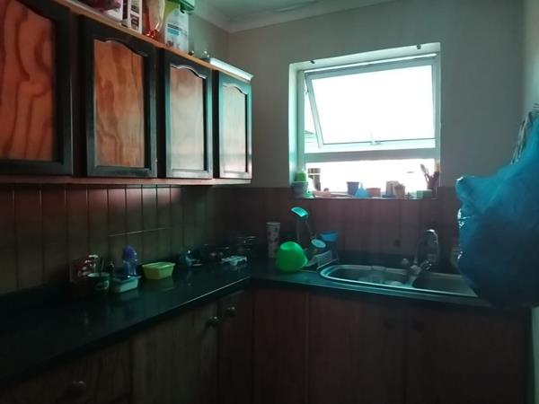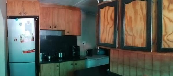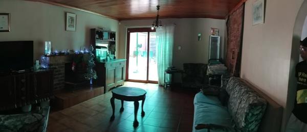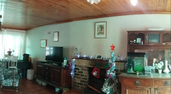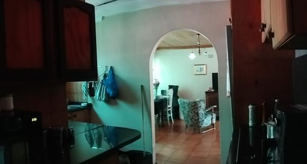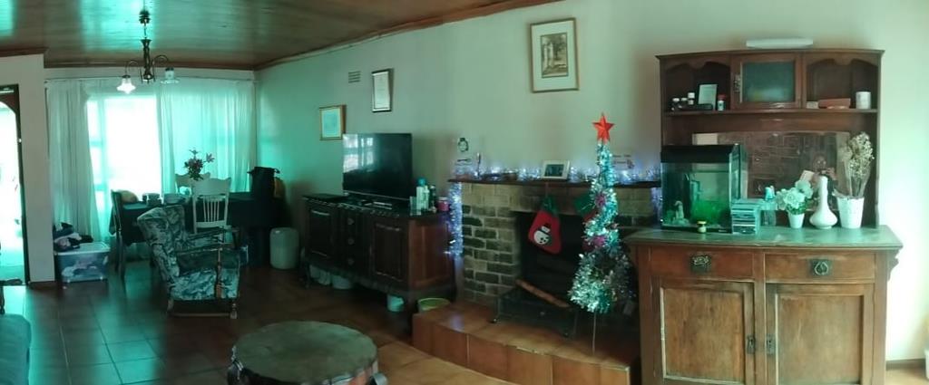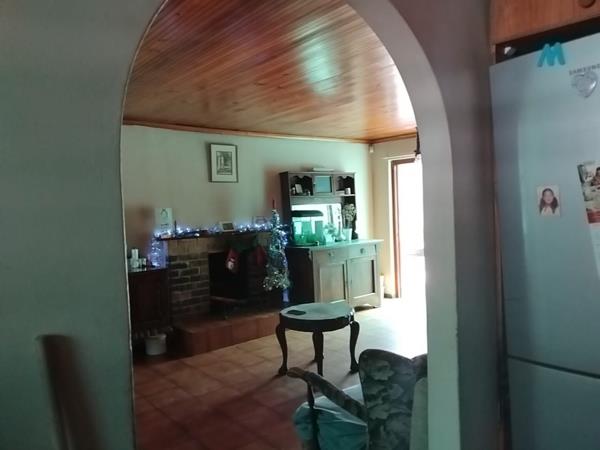 Inside, youll find a spacious lounge with an open dining area, enhanced by a knotty pine ceiling and a charming facebrick built-in fireplaceperfect for cosy family living. The arched, fitted kitchen is finished with two-toned wooden built-in cupboards, offering both style and practicality.