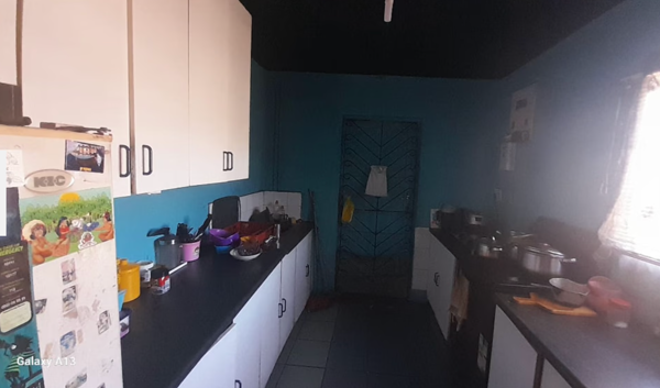 With three bedrooms and one bathroom, this home offers a substantial foundation for creating a personalised living space. The interior features a lounge area, complete with crown molding and a built-in media unit, providing a functional space that awaits modern finishes and a fresh aesthetic. The kitchen, currently equipped with white cabinets, dark countertops, and a security-gated door, offers practical storage but is ready for a contemporary update to match your vision.