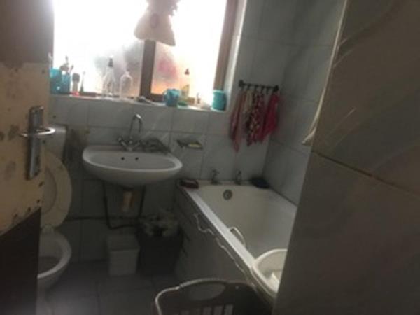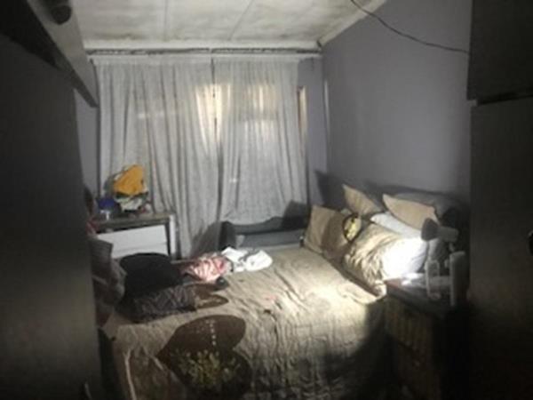 Three-bedroom home featuring tiled flooring throughout, a family bathroom, a lounge, and a kitchen equipped with melamine countertops and built-in cupboards. The property includes a garden and secure parking for up to three vehicles. Security features consist of burglar bars. Currently, the house generates a rental income of R3,000 per month under a month-to-month lease. Proceeds from the sale are intended to clear outstanding property rates. Onus is on the purchaser to evict the current tenants.