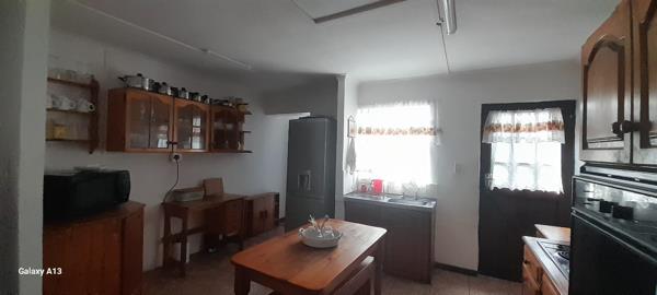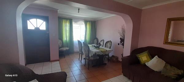 The property offers a fitted kitchen, a spacious lounge and dinette area, and is tiled throughout. The main bedroom features built-in cupboards, and the family bathroom is fitted with a shower.