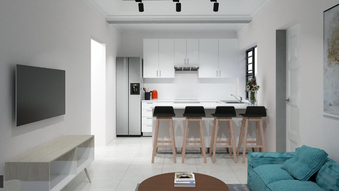 Photos show the current stage of construction, while the 3D renders illustrate what the completed homes will look like once finished.