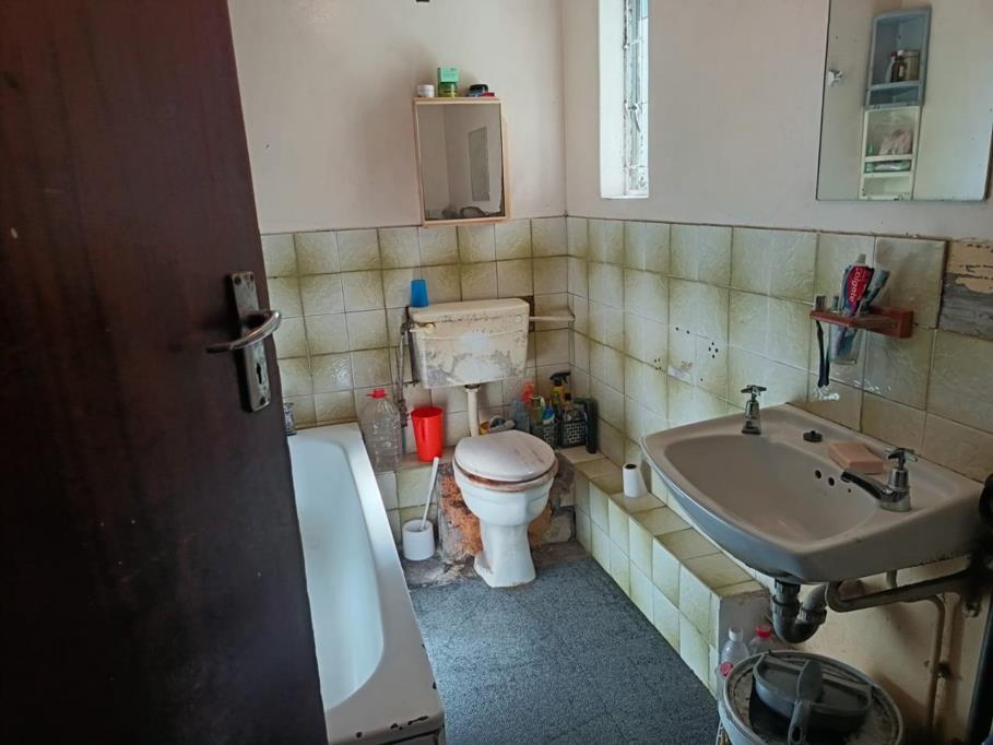 The property features a functional kitchen with built-in cupboards, providing practical storage space. The family bathroom consists of a basin, toilet, and bath.