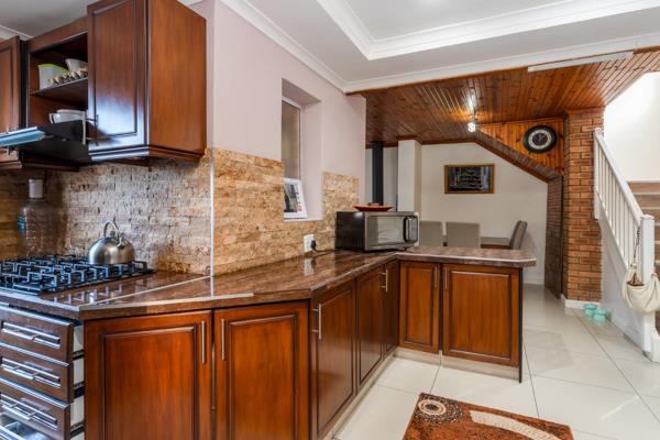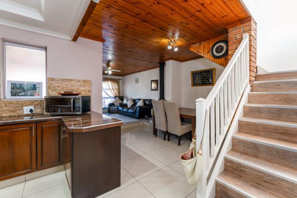 On the lower level you will find the huge master bedroom with a walk-in closet that has loads of cupboard space and a modern ensuite with shower. Downstairs you will also find the big family bathroom, an open plan lounge and dining room, as well as a contemporary kitchen. The kitchen has beautiful cupboards with a gas stove and an eye level oven.