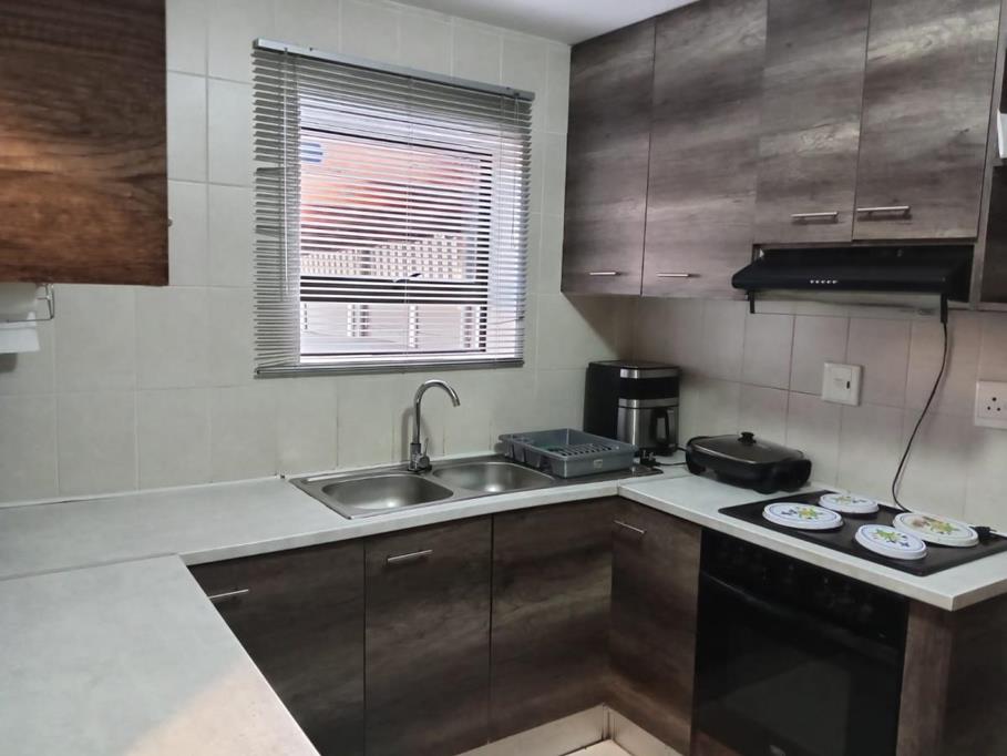 The ground floor boasts a fully fitted kitchen with built-in cupboards, a separate laundry room, and a spacious lounge perfect for relaxing or entertaining. Outside, the property offers secure parking for up to three vehicles, along with an undercover braai area that makes entertaining a breeze. For your peace of mind, the home is equipped with a surveillance system and an automated perimeter gate, ensuring safety at all times. WiFi connectivity is also available, adding to the overall convenience.