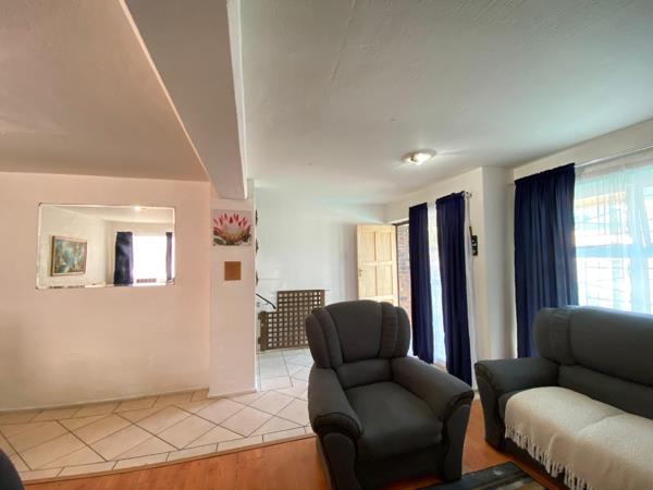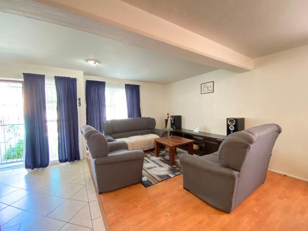 The home welcomes you with an open-plan lounge and dining area, beautifully finished with tiles and laminated flooring. The fully fitted kitchen flows seamlessly into the enclosed entertainment and braai area, perfect for hosting family and friends. This versatile space also includes a guest toilet and features a sliding door leading to the side yard with easy access to the front of the property. Upstairs, you''ll find three well-sized bedrooms, all fitted with built-in cupboards and laminated floors. The family bathroom is complete with a bath, shower, basin, and toilet.