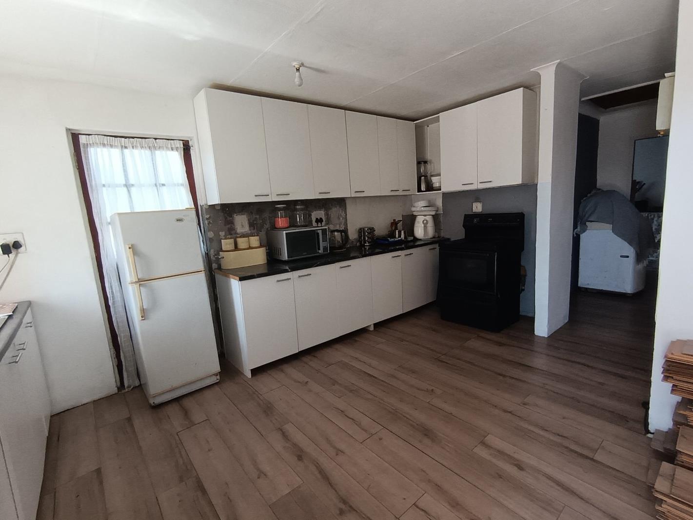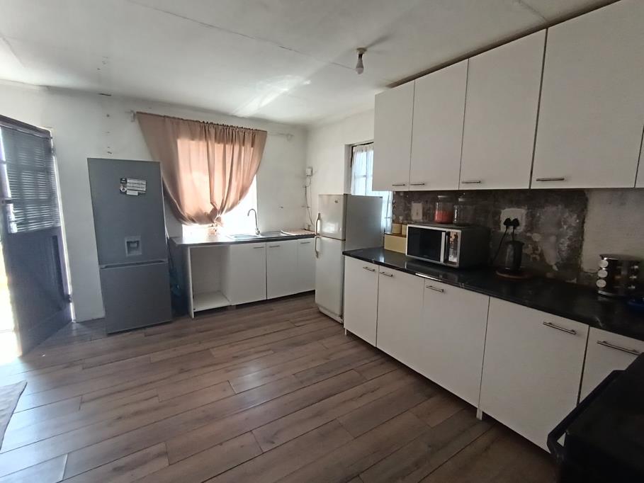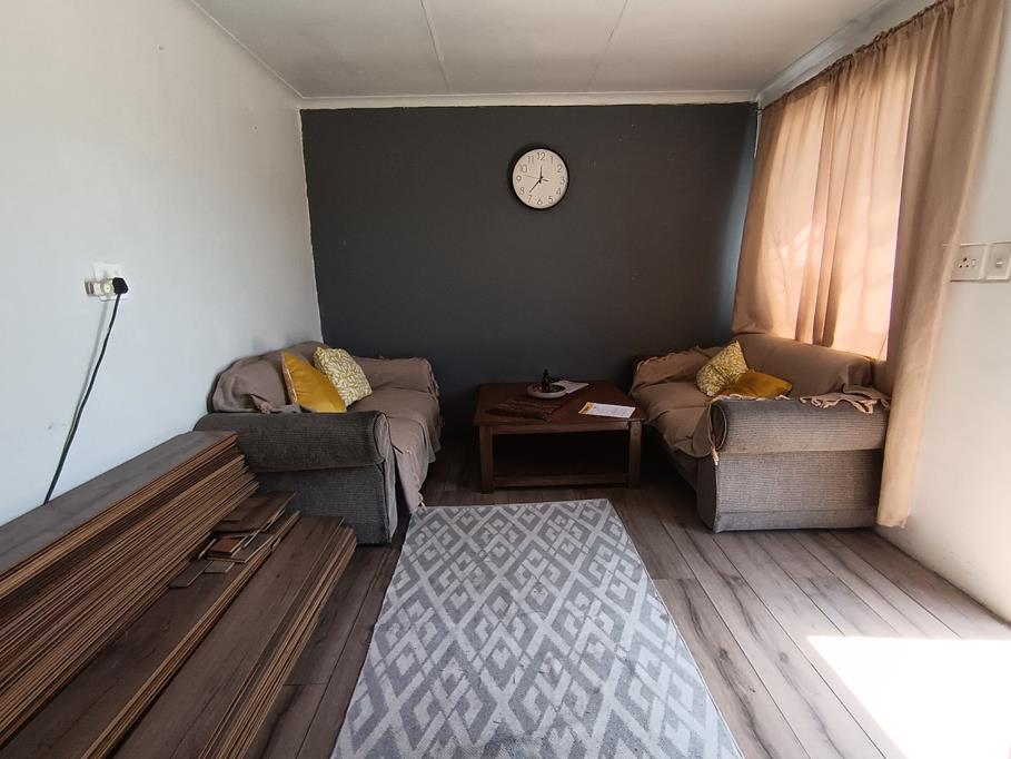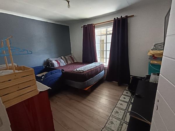 Located in a peaceful cul-de-sac, this well-kept 3-bedroom home offers fully laminated flooring throughout and comfortable living spaces. The open-plan lounge and kitchen are fitted with stylish grey built-in cupboards, creating a modern and inviting atmosphere.