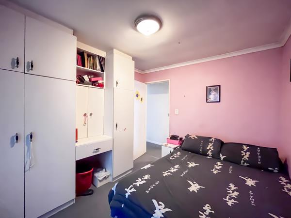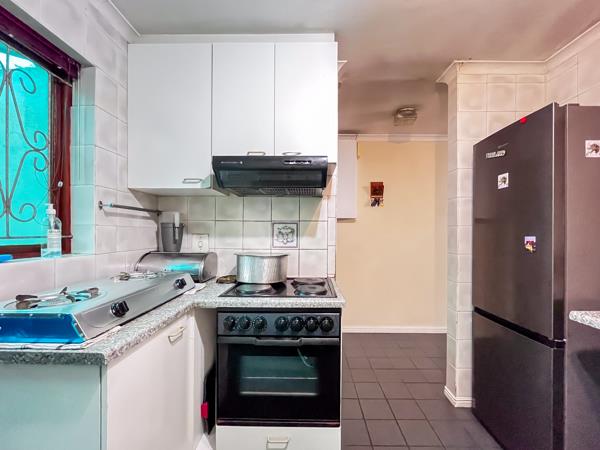 The kitchen is equipped with a built-in stove and extractor fanideal for home chefswhile one of the bedrooms includes a built-in cupboard for added storage. A well-appointed bathroom serves the home, and secure burglar bars on the windows offer peace of mind.