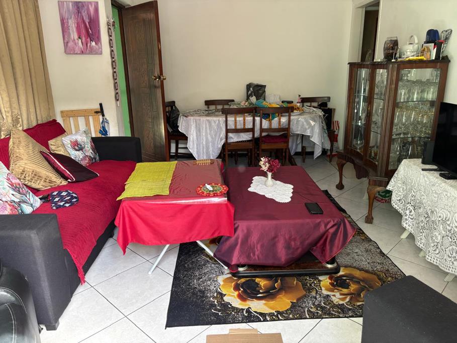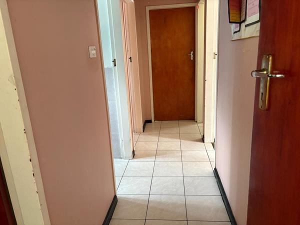 Bedrooms: Three cozy bedrooms with iron window frames and burglar bars. Two bedrooms have open floor space, no build in cupboards while one bedroom have built-in cupboard. Carpets in all 3 bedrooms