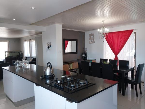 An Entertainers delight in a unique location. This family home has a beautiful open plan lounge area with a large wood burning fireplace. It has been fully tiled from front to back with beautiful white porcelain tiles. The lounge has loads of natural sunlight and opens up on to a newly renovated, fully fitted all white gourmet kitchen which is truly the heart of this family home . The dining area is situated directly opposite the kitchen and allows for easy conversation to be enjoyed when entertaining friends and family. The large primary bedroom is situated downstairs and has a spacious walk in closet and an ensuite with shower ,hand basin and toilet. The family bathroom /guest bathroom offers a bath , handbasin and toilet whilst the bathroom upstairs has a shower ,hand basin and toilet. There are 3 well sized bedrooms upstairs ,2 of the 3 interleading whilst the 3rd bedroom is completely seperate. The house has a seperate TV room that could easily serve as an additional 5th bedroom or a work from home office or study if needed. The outside offers a unique fun factor comprising of a fire pit / braai area with built in bench and work top tables which leads onto a wooden deck with jacuzzi and a beautiful sparkling pool . Surely there is no better way to enjoy quality time with family and friends At the front of the house there is additional off street parking for 4 cars besides the double garage . This family home allows for family gatherings without the worry of disturbing the neighbours by over crowding the roads .Situated in a Cul De sac you could quite easily have up to 12 additional cars parking at the front of the house without encrouching on the neighbours drive ways .