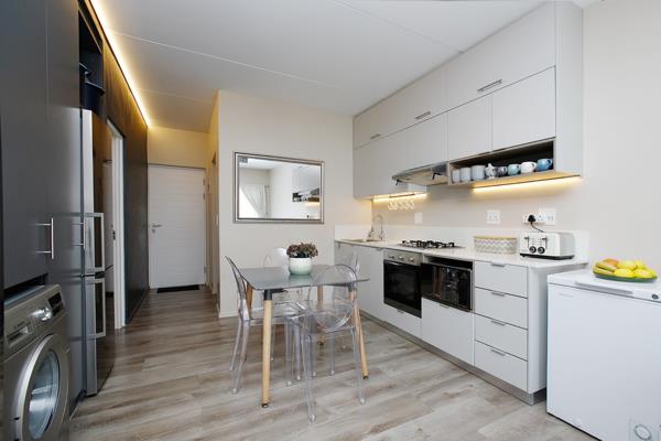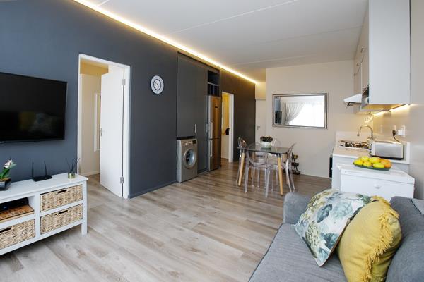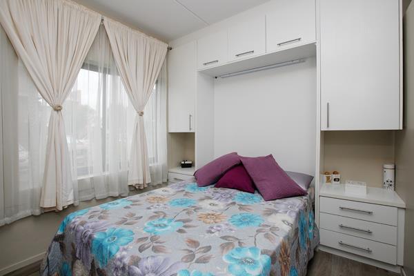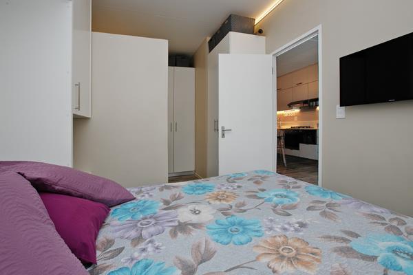 2 bedrooms and 2 stylish bathrooms. A fold-away bed was added to the Main bedroom that folds away for space-saving. This is a fixed feature that is included.