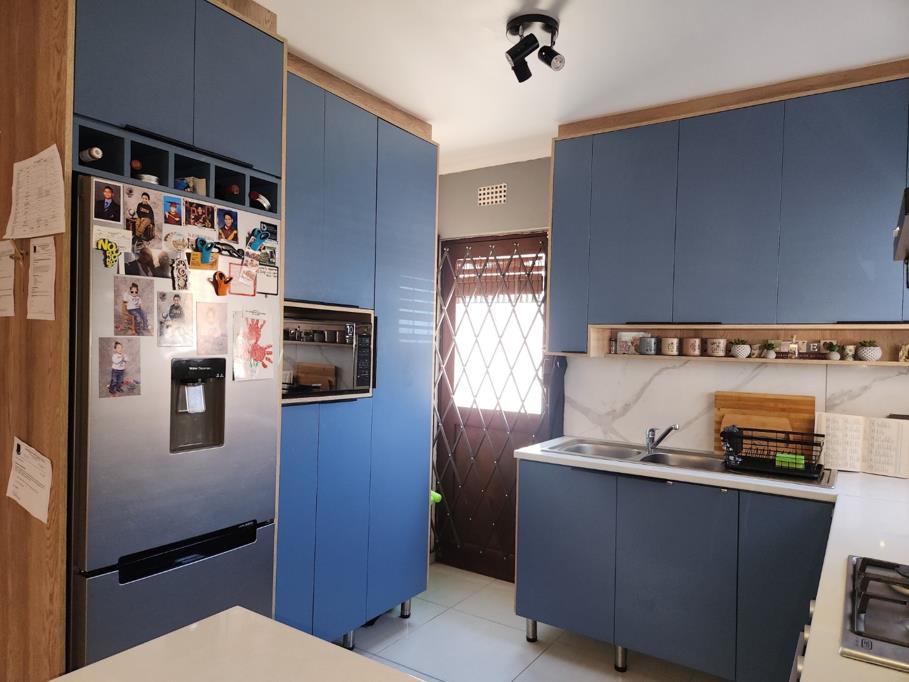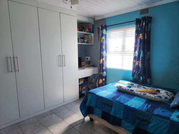 Outdoors, a single garage and additional parking for four vehicles are available, along with a built-in braai for entertaining. Security is enhanced by burglar bars and a security gate on the kitchen door, ensuring peace of mind in this desirable location.