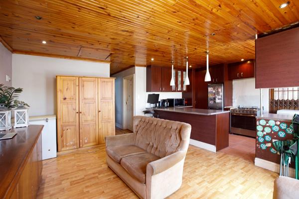 Welcome to your next home. Upon arrival, you are welcomed into a warm and inviting open-plan lounge and kitchen area, enhanced by a beautiful knotty pine ceiling that adds a touch of sophistication. The kitchen features built-in cupboards and an island-style table, perfect for enjoying your morning breakfast, casual lunches, or family dinners.