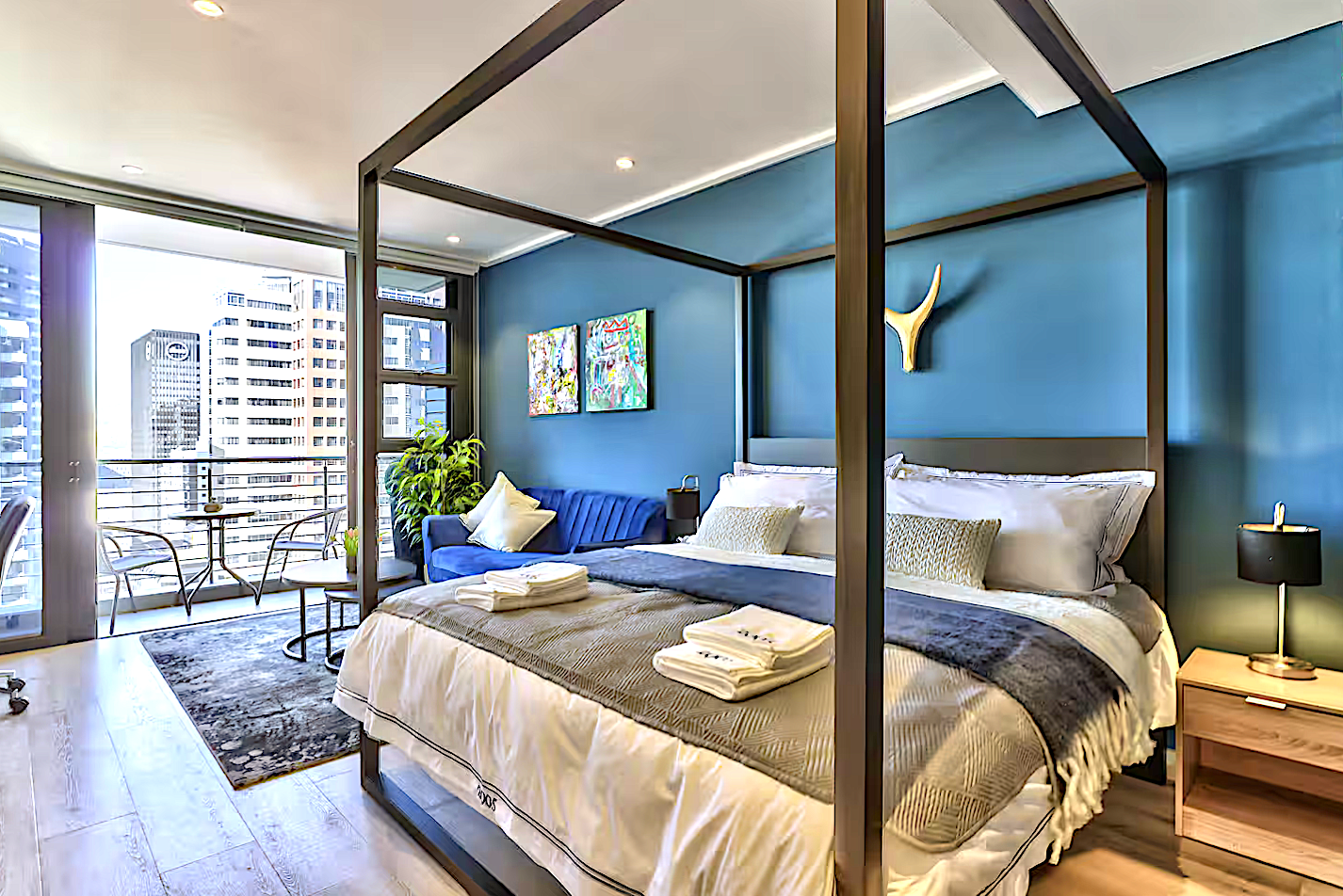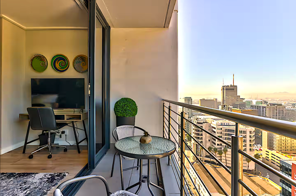 Step outside onto your 20th-floor private balcony and enjoy captivating views of the Cape Town skyline, Table Mountain, and the harbour a serene spot to unwind with a morning coffee or evening cocktail.